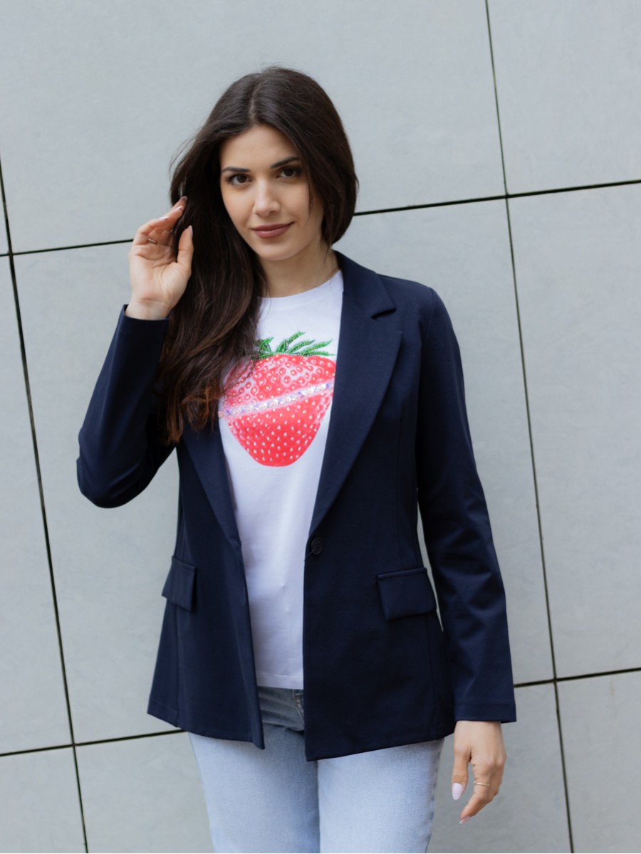 Σακάκι μεσάτο με γιακά, πέτα και μακρύ μανίκι, μπροστινές τσέπες με καπάκι, κλείσιμο μπροστά με ένα κουμπί