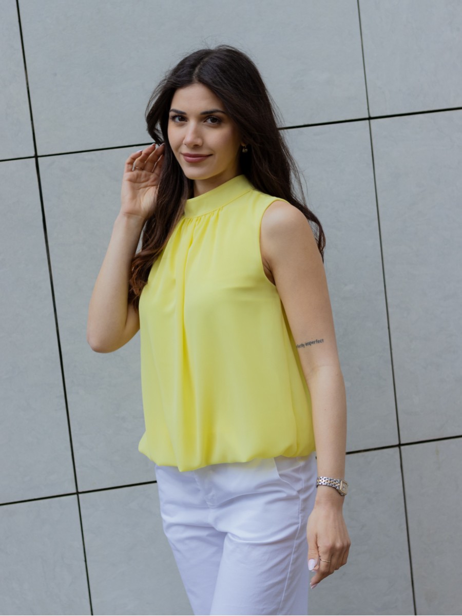 Τοπ με όρθιο λαιμό και κλείσιμο στην πλάτη με κουμπί