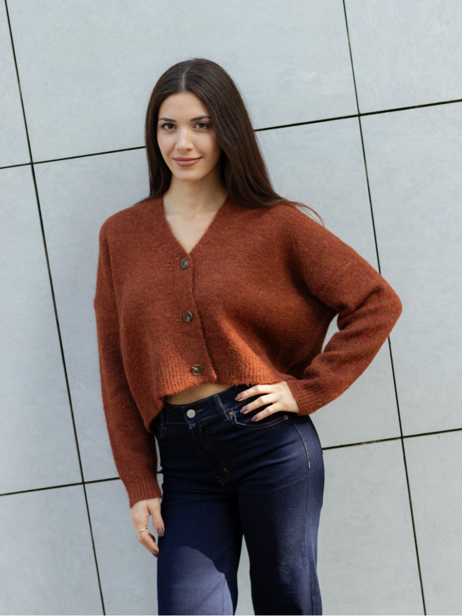 Ζακέτα πλεκτή, μακρύ μανίκι, λαιμόκοψη V, κλείσιμο με κουμπιά μπροστά